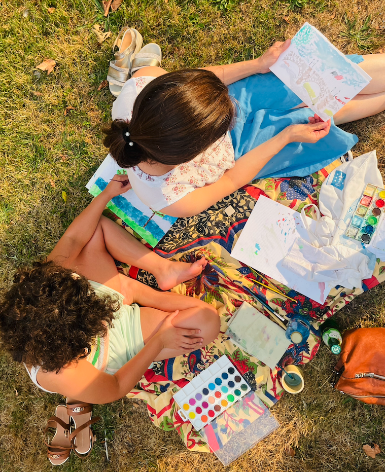 Near the Roman bridge in the town where I live, in the heart of the Ribeira Sacra, I organized an open-air watercolor painting event in collaboration with the organization Provivienda to integrate people under international protection with locals.